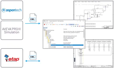 Für unterschiedliche Simulationstools wie Aspen Plus bietet Engineering Base fertige Import/Export-Lösungen. Auch firmeneigene Simulationswerkzeuge lassen sich einfach integrieren. Unabhängig von der Ausgabeform der Ergebnisse ermöglicht eine Transformation in EBML den nahtlosen Import. So können Stoff- und Materialflüsse, Behälterkapazitäten und andere typische Größen eines Produktionsprozesses effektiv simuliert werden, was die Prozessplanung erheblich vereinfacht.